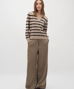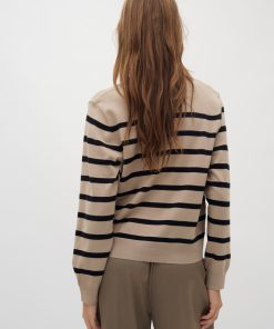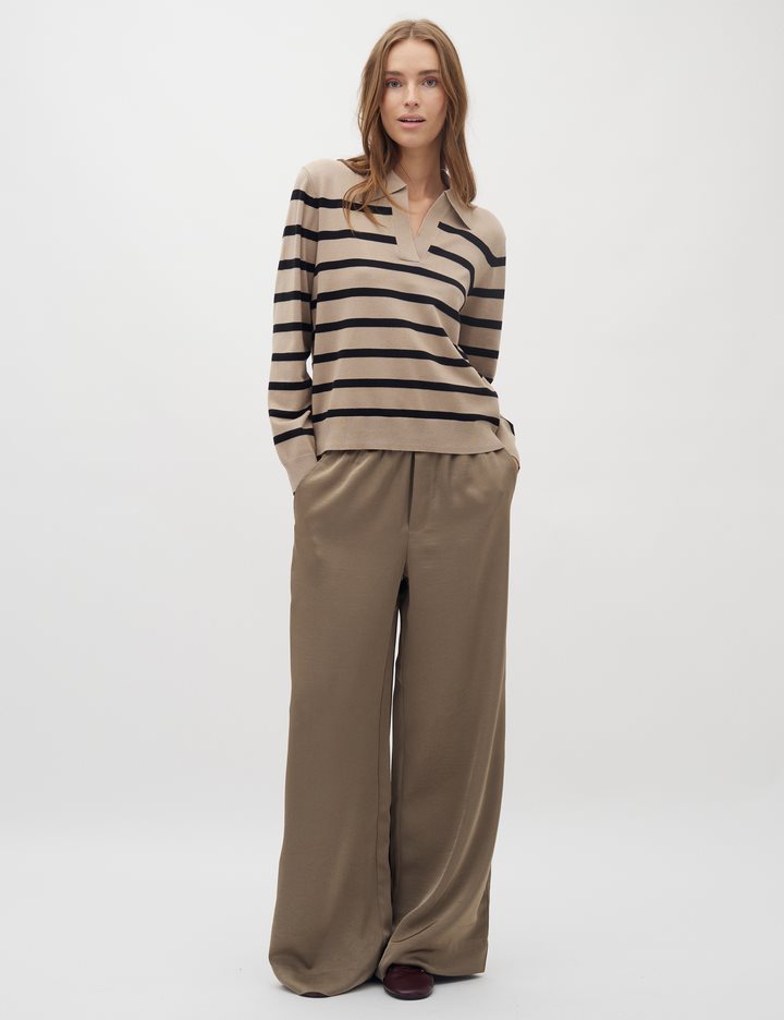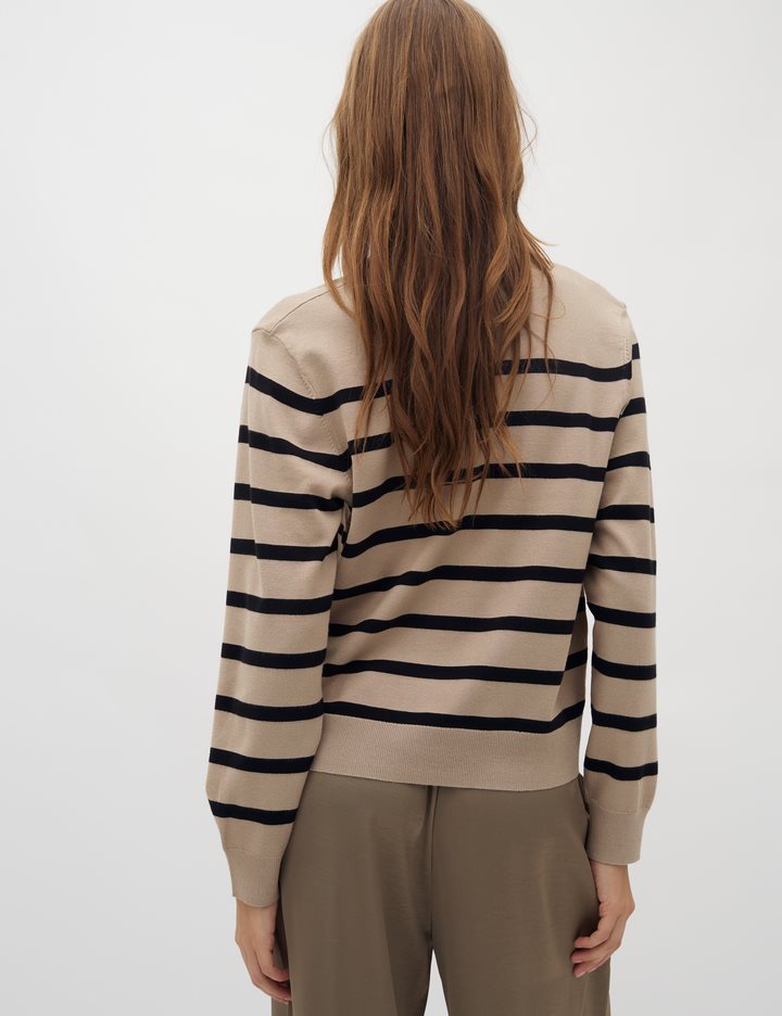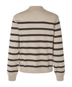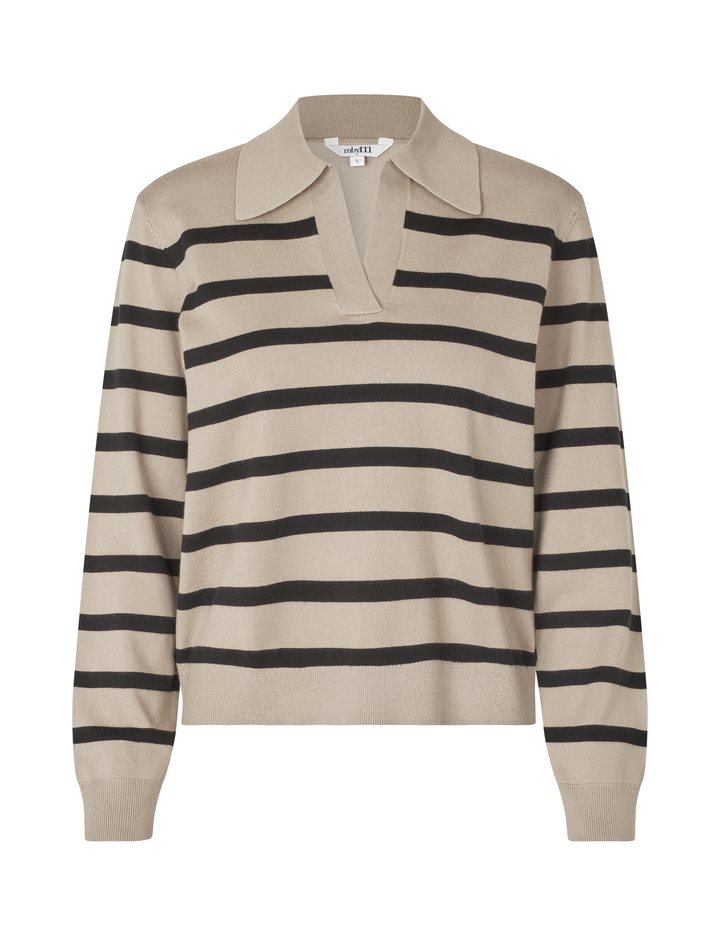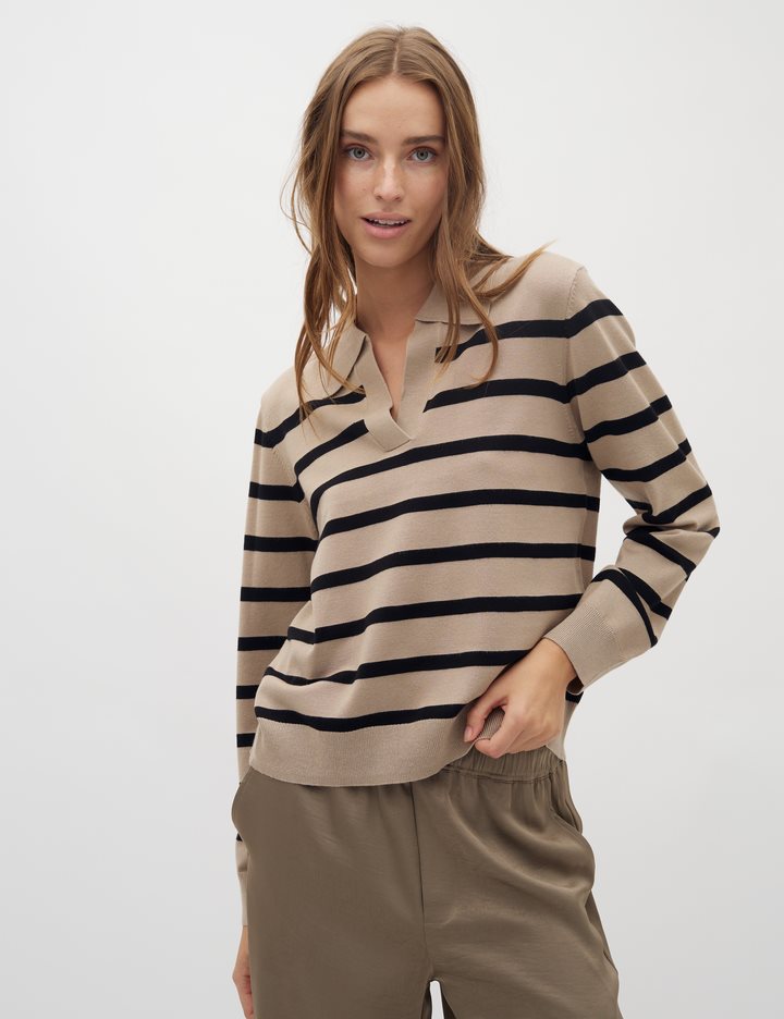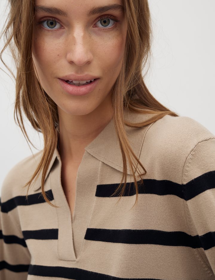 Polo in a soft knit quality – Material: 70% Viscose, 30% Polyester- Loose fit- Polo collar- The stripe- Soft knit quality- Color: Oyster Black Stripe