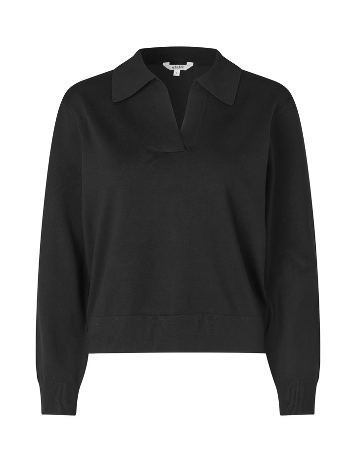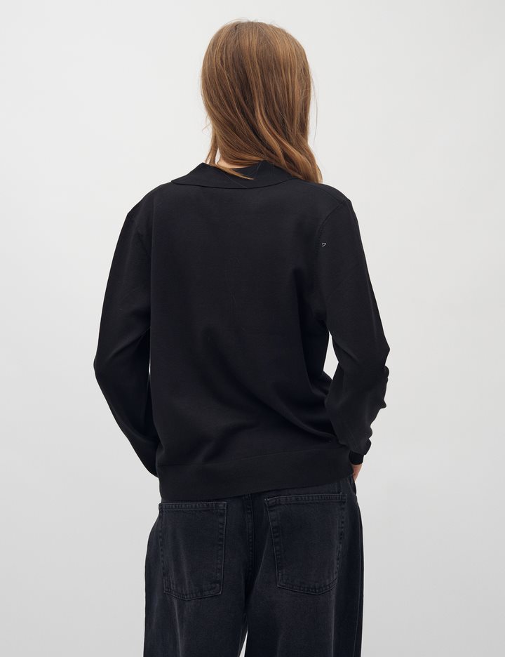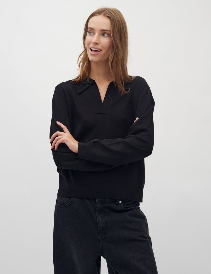 Polo in a soft knit quality – Material: 70% Viscose, 30% Polyester- Loose fit- Polo collar- Soft knit quality- Color: Black