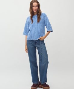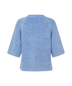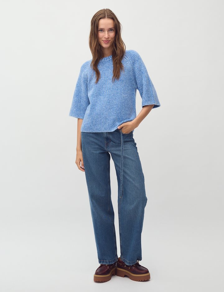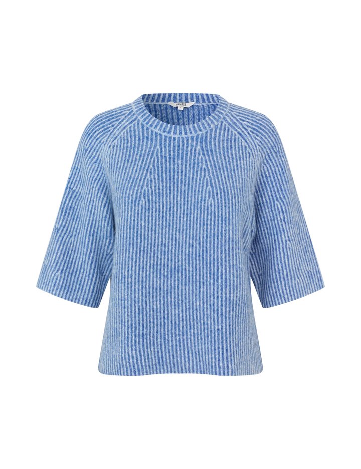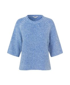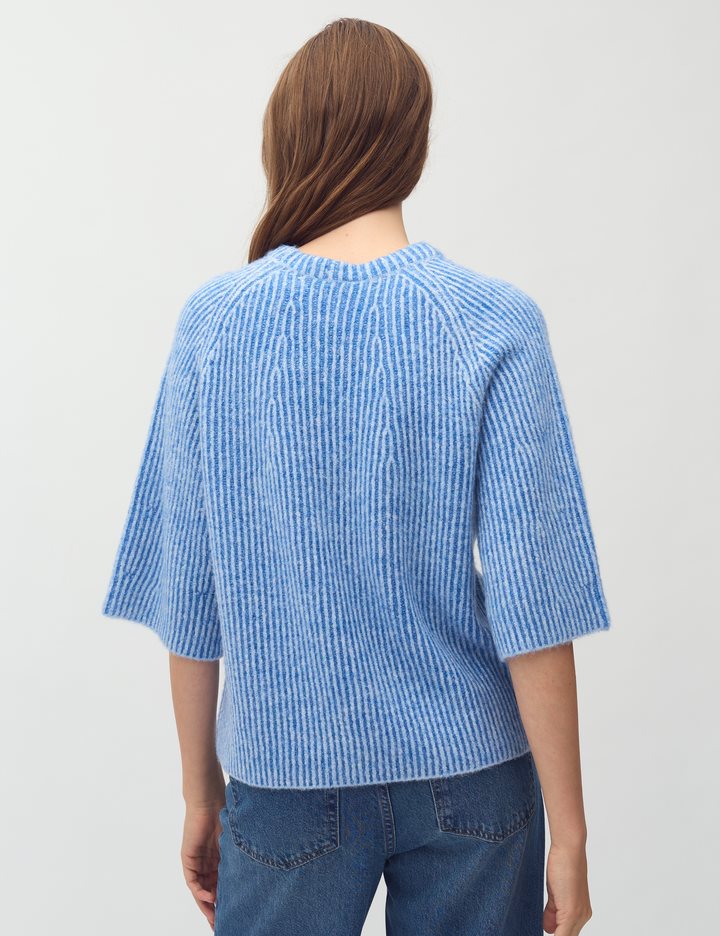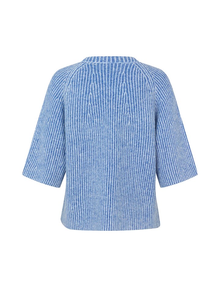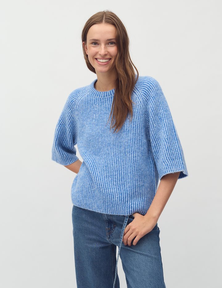 Knit with short sleeves- Material: 68% Acrylic, 12% Polyester, 11% Nylon, 6% Wool, 3% Elasthane- Short loose sleeves- Loose fit- Round neckline- Short sleeves- Color: Blue Sapphire StripeThe model is 175 cm tall and is wearing a size S.